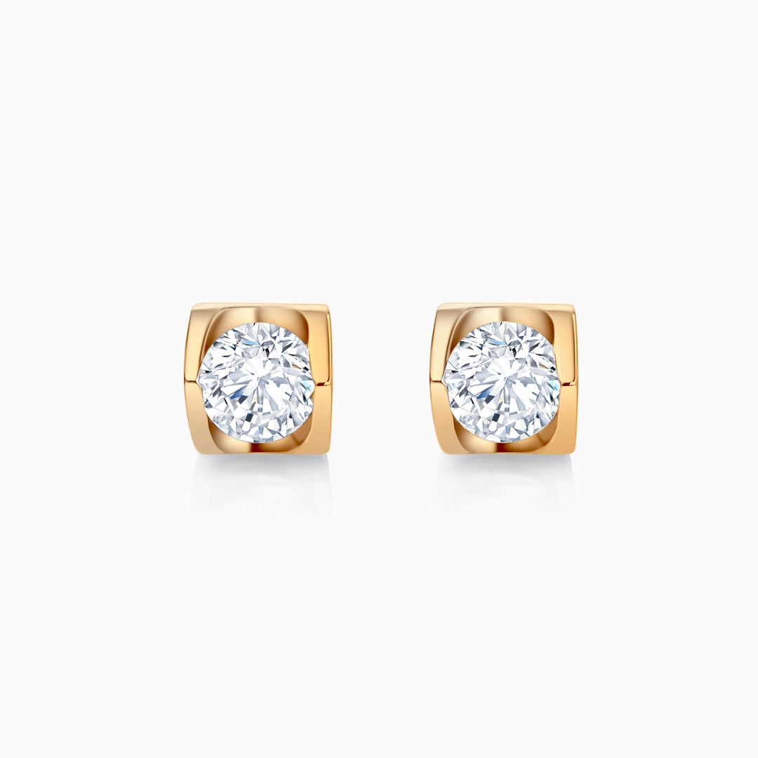 Brilliant round-cut moissanite studs, meticulously crafted in solid gold, radiating timeless elegance with every sparkle.
