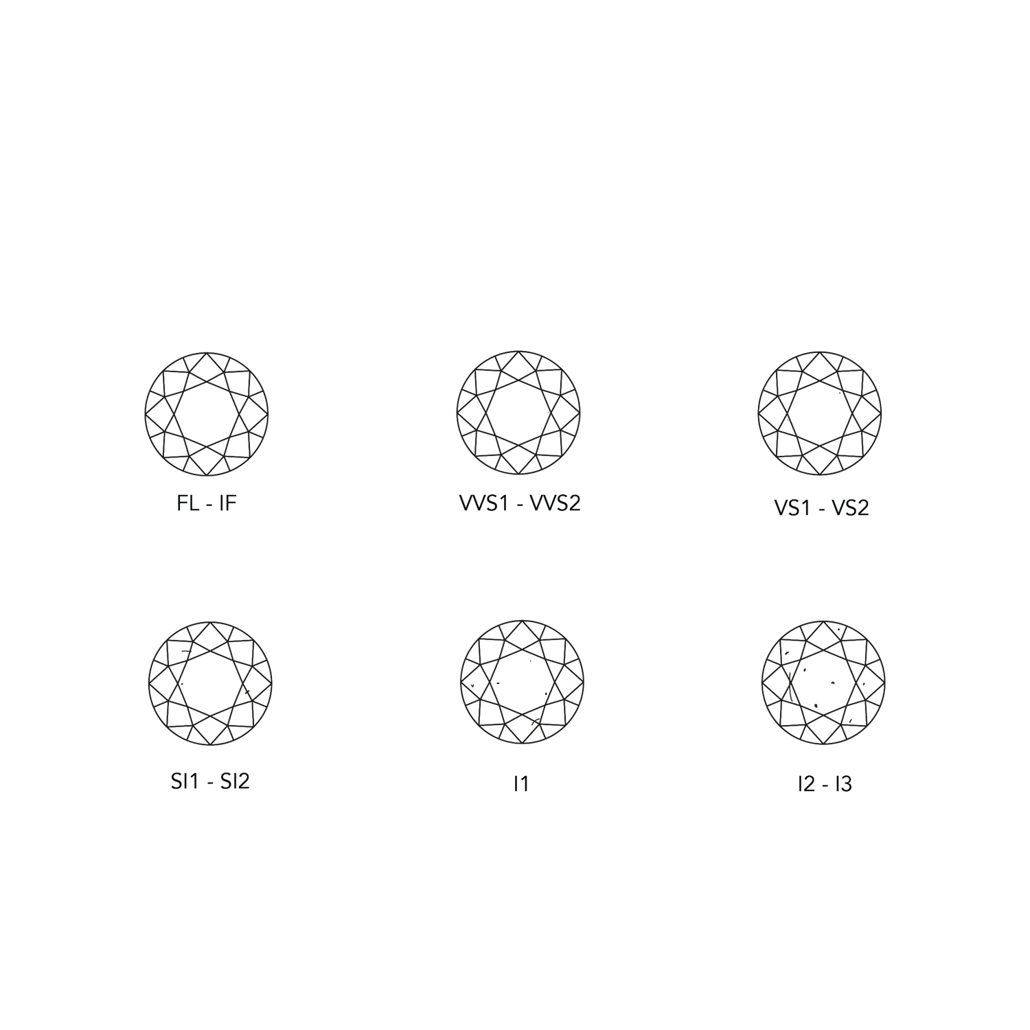 Clarity refers to the inclusions found in a diamond. These can occur during the creation of cultured diamonds when exposed to metal traces utilised during the HPHT growth process or mineral inclusions from the CVD growth method.