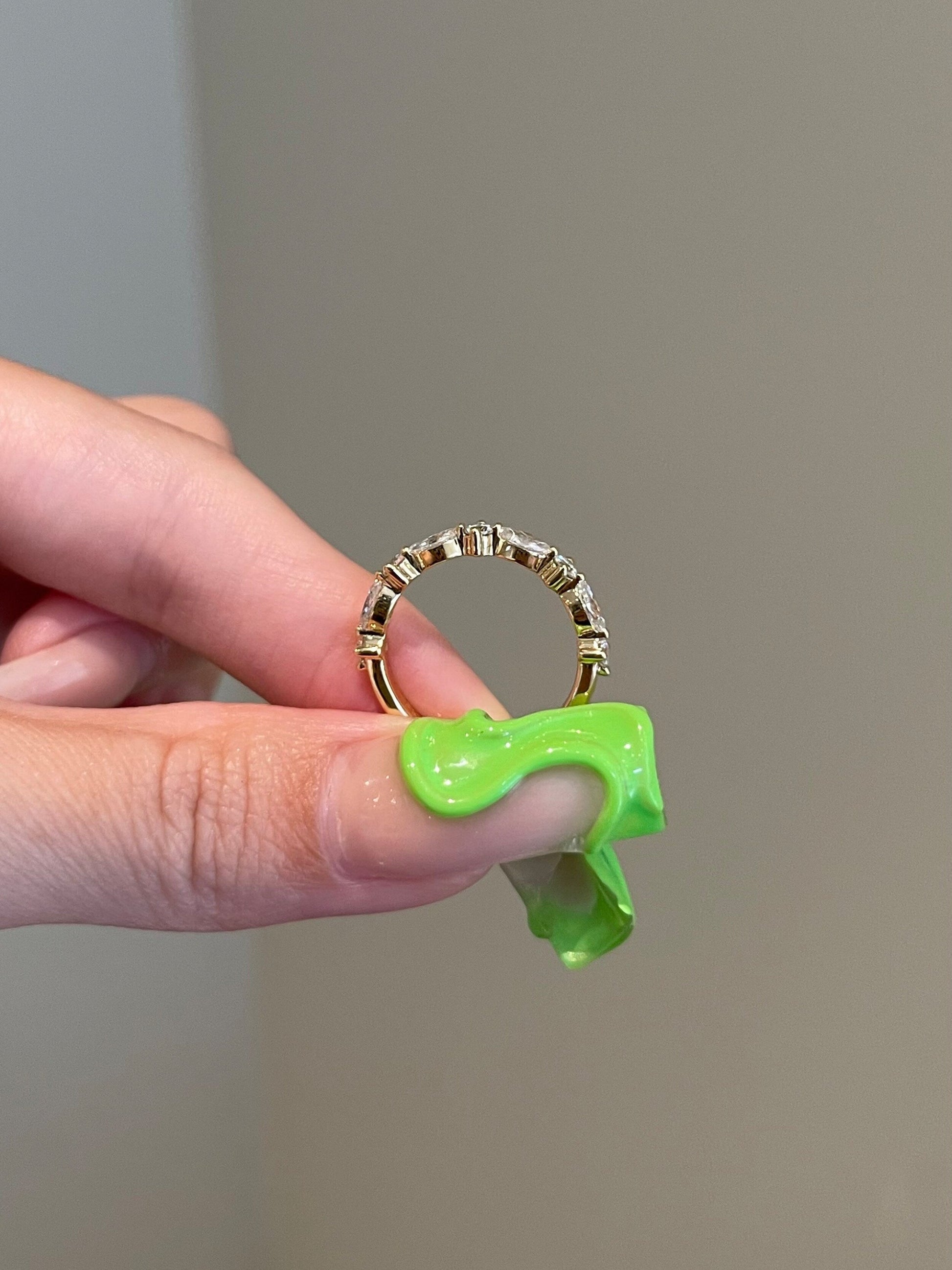 • In the case where the ring features a shank adorned with full eternity stones, resizing becomes unfeasible due to the intricate design and setting. Hence, we are unable to proceed with resizing in such instances.