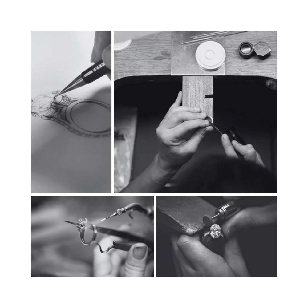Our small team of jewellers works with a blend of traditional artisan jewellery practices and modern technology to bring every Moissanite Craft piece to life.