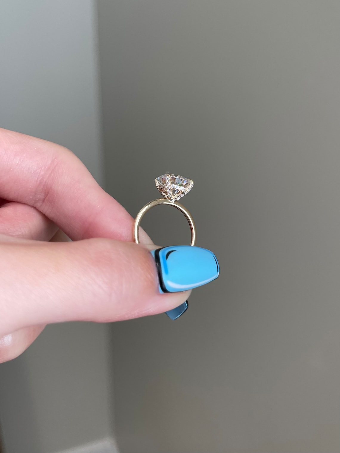 3 CT Round Shaped Moissanite Engagement Ring In Hidden Halo Design