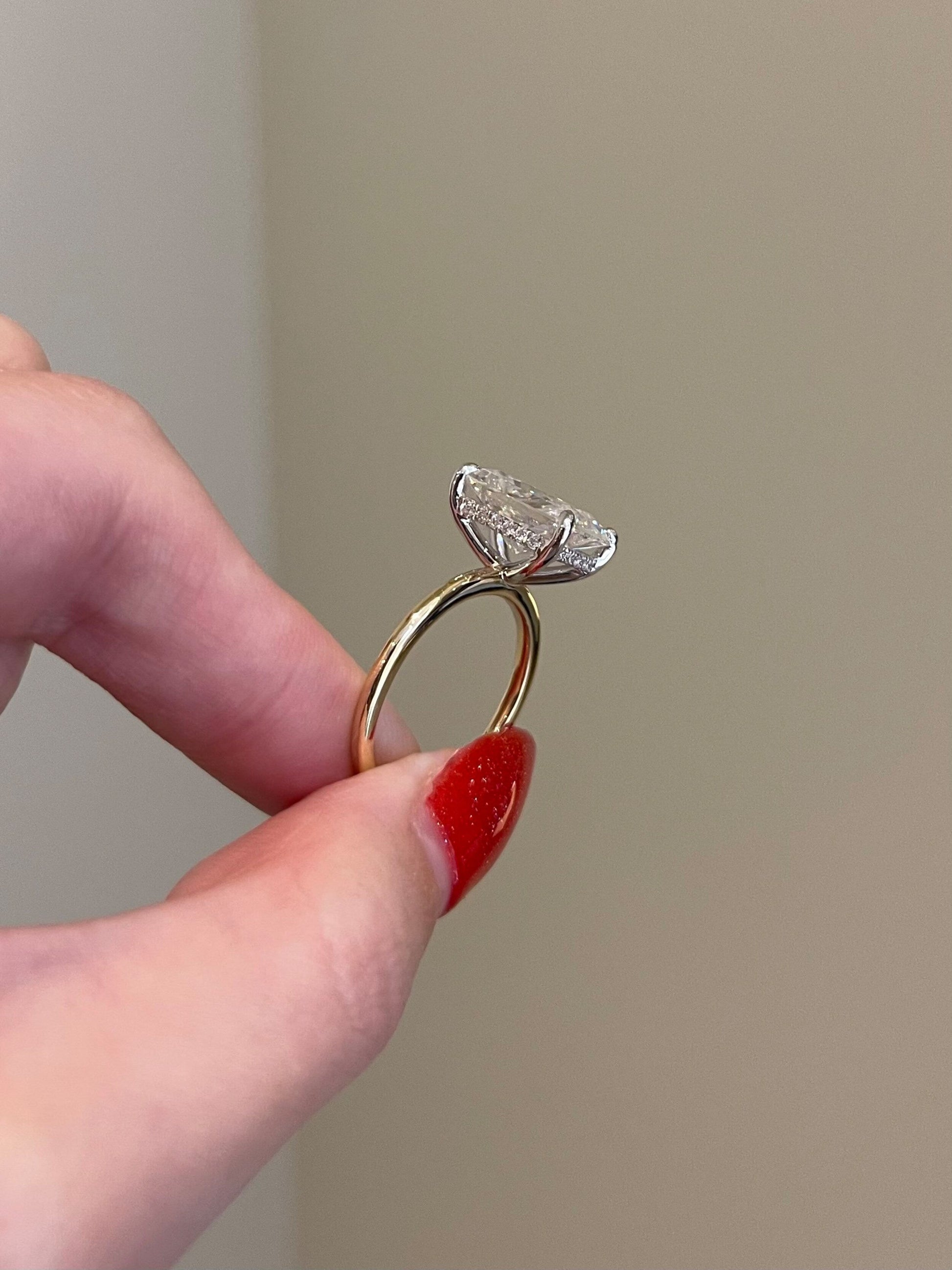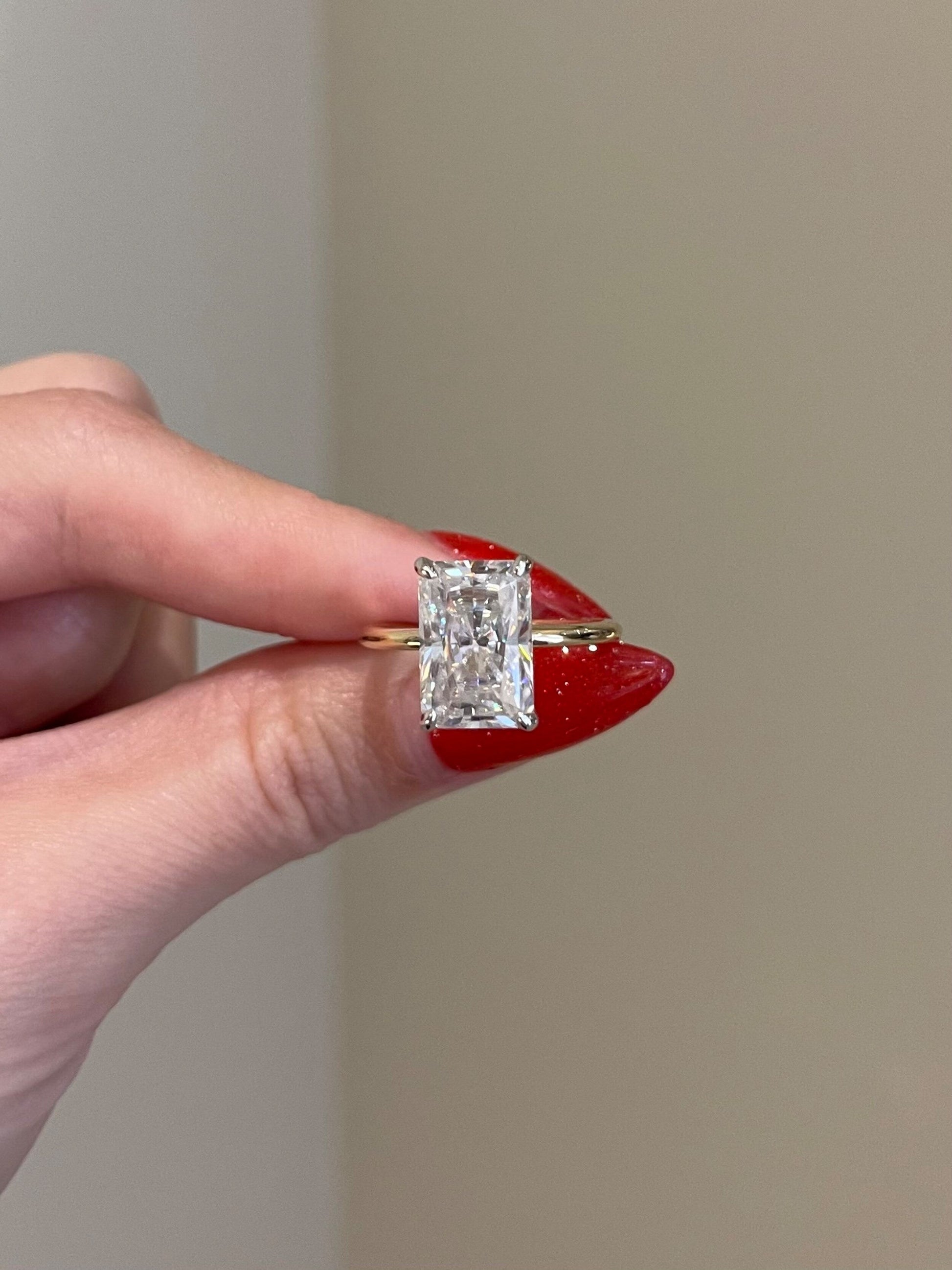 5 CT Radiant Shaped Moissanite Engagement Ring In Hidden Halo Design