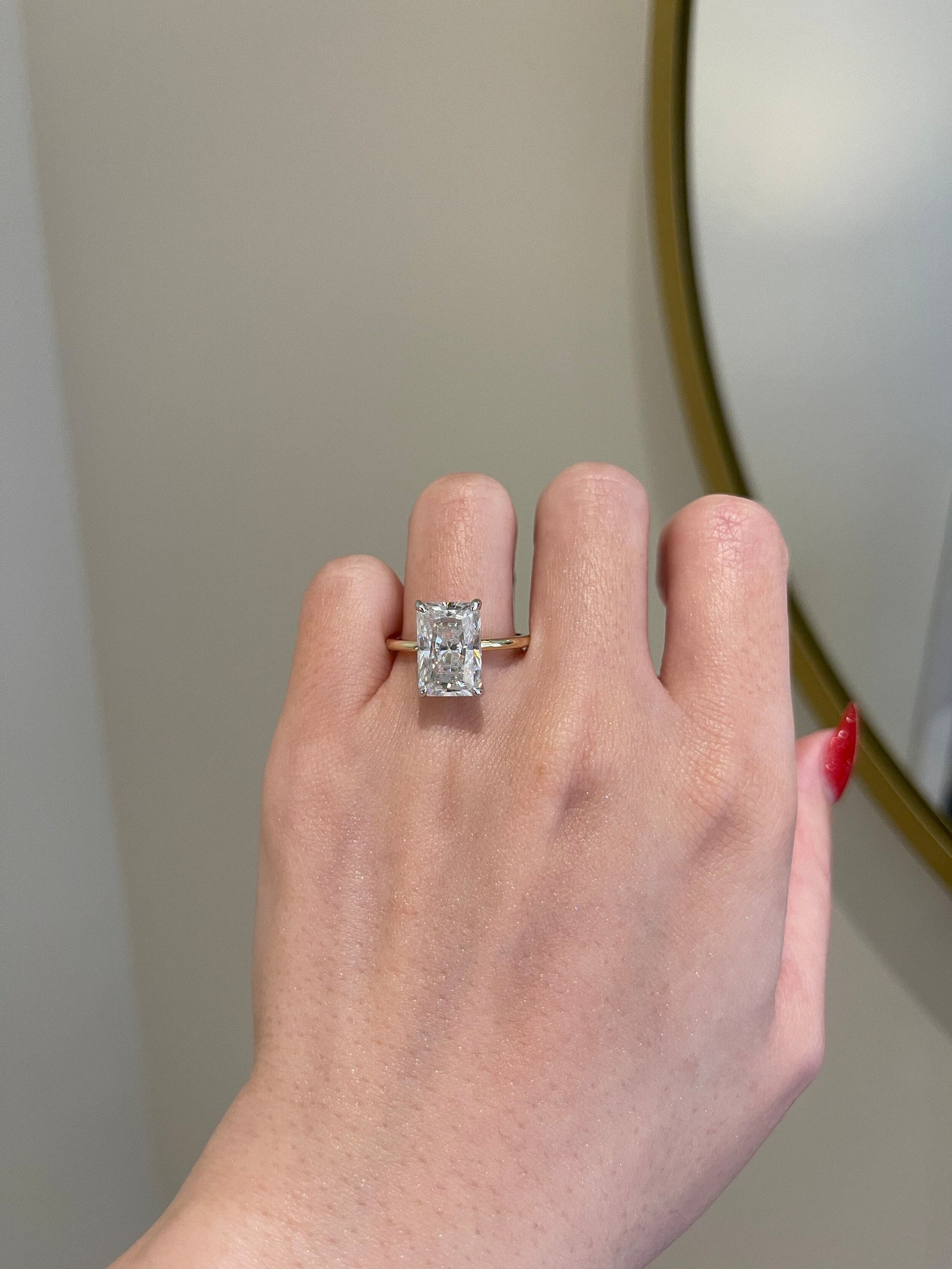 Unveil classic elegance with this 5 CT Radiant cut moissanite ring.