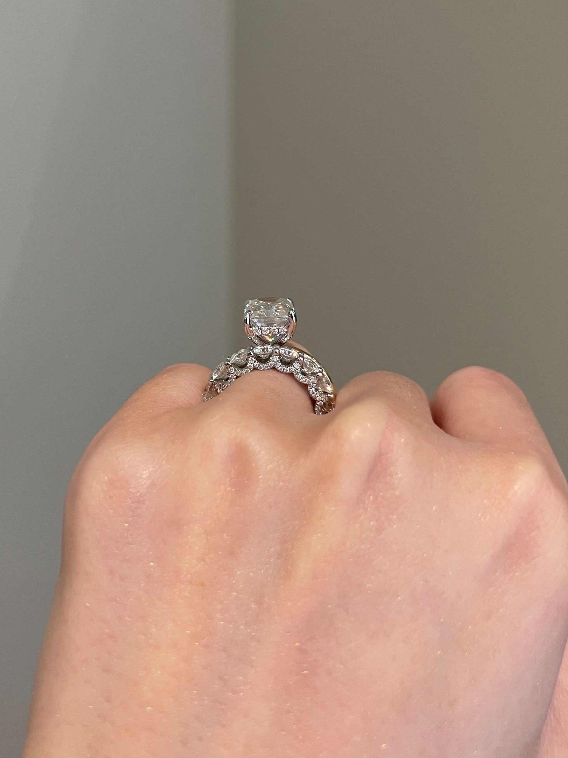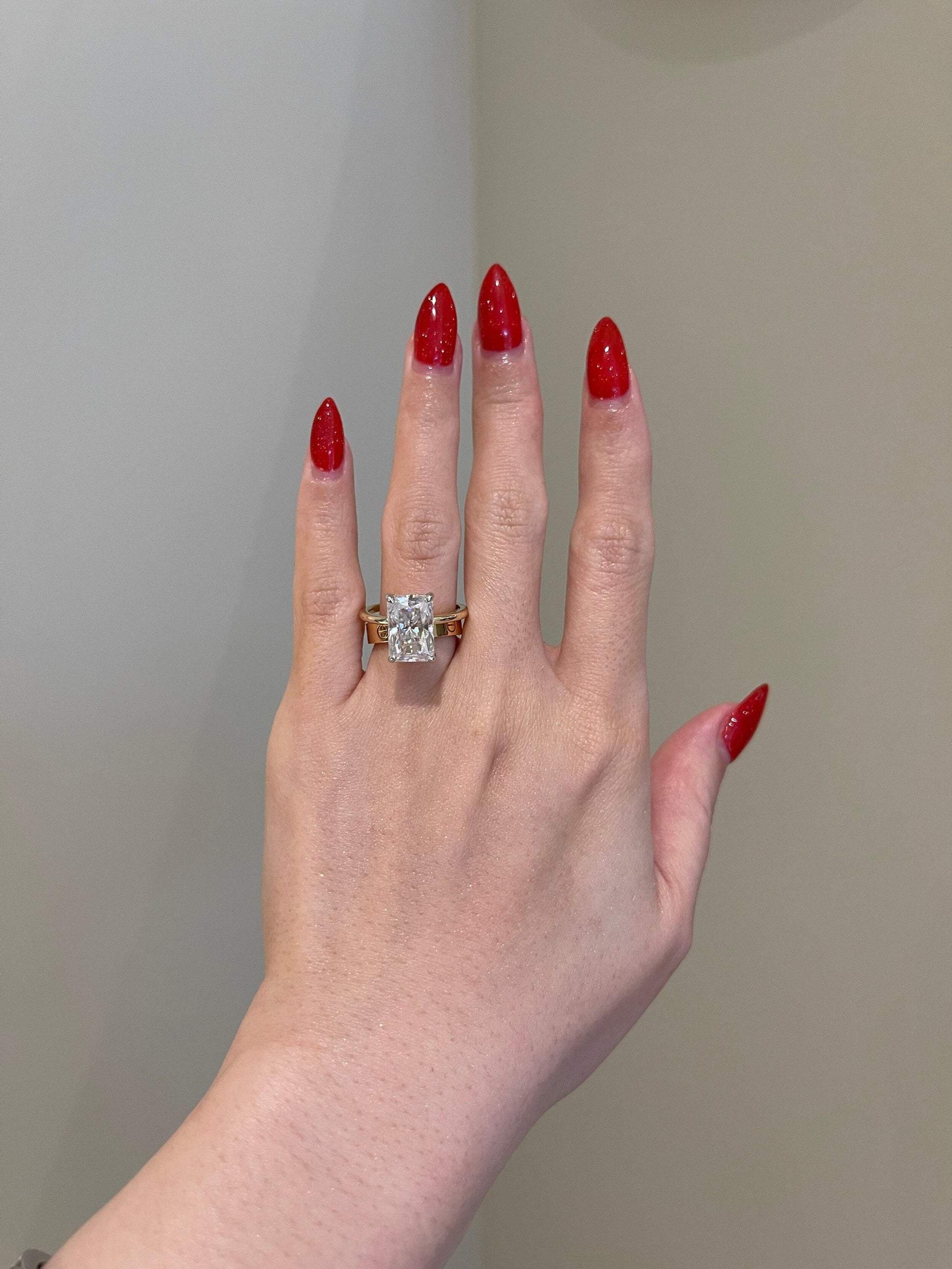 Center Stone: 5 CT Radiant Moissanite, DEF Color, VVS Clarity