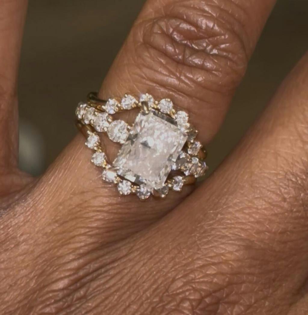 Absolutely lovely pairs well with my diamond ring!! These stones are my new fav they sparkle with so much more fire than diamonds do and I love that sparkle!