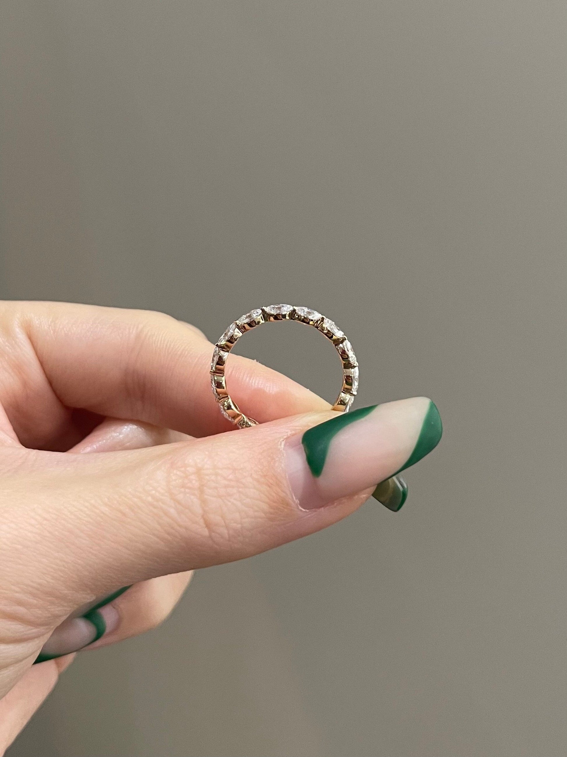 • In the case where the ring features a shank adorned with full eternity stones, resizing becomes unfeasible due to the intricate design and setting. Hence, we are unable to proceed with resizing in such instances.